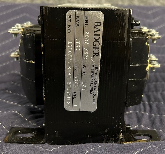 The Badger Transformer 1GPOF75TKFAT-BT164102T is an industrial-grade 575 VAC power transformer built for reliable voltage conversion and electrical isolation in control panels, machinery, and industrial systems. Manufactured by Badger, a respected custom transformer maker, it delivers robust performance and rugged construction for demanding electrical environments.
