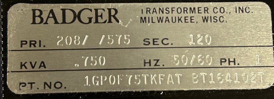 Badger Transformer 1GPOF75TKFAT-BT164102T 575V